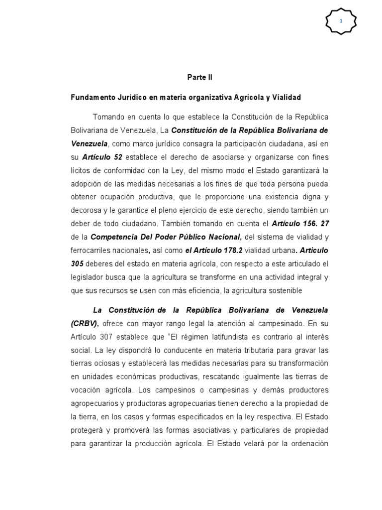 Fundamento Jurídico en materia organizativa Agrícola y Vialidad