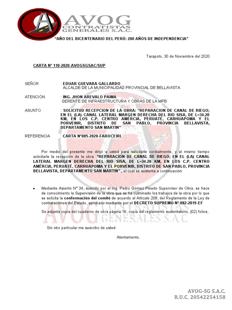 CARTA N° 110-2020-AVOGSGSAC/SUP
