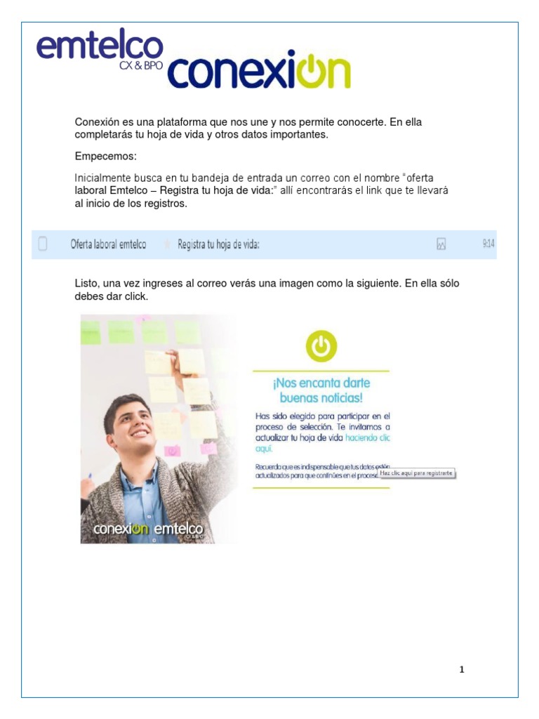 laboral Emtelco – Registra tu hoja de vida:” allí encontrarás el link que te llevará