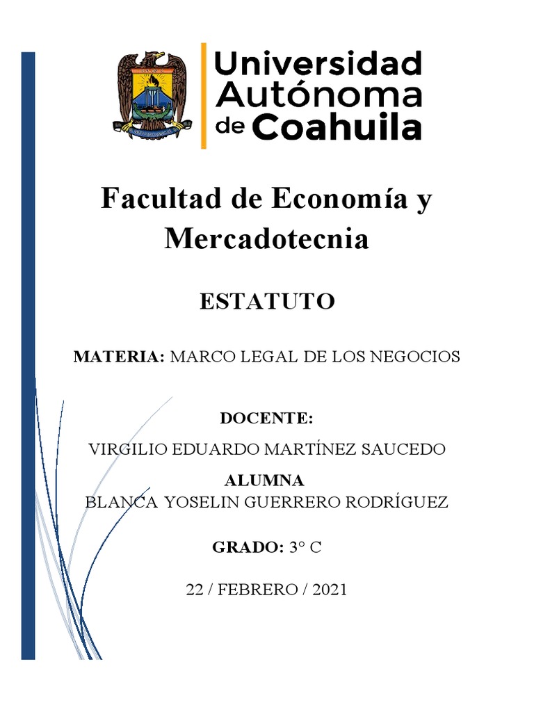 MATERIA: MARCO LEGAL DE LOS NEGOCIOS