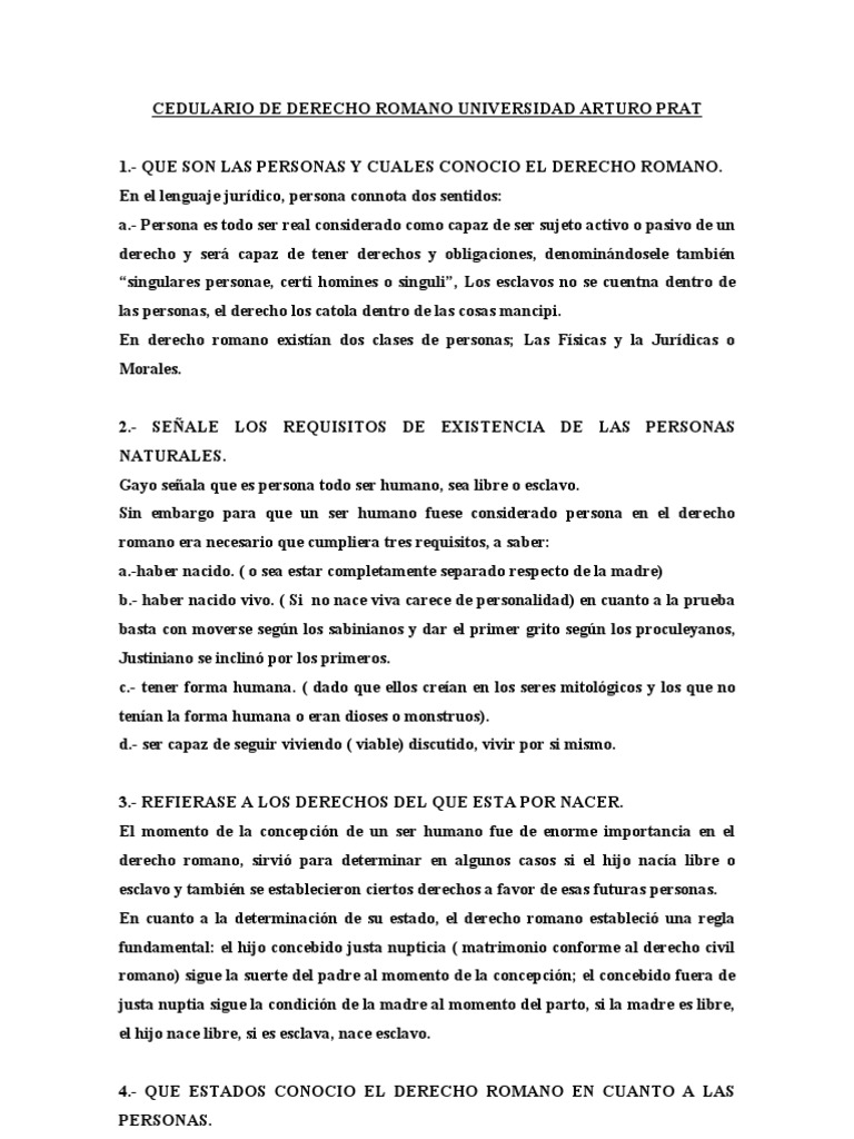 CEDULARIO DE DERECHO ROMANO UNIVERSIDAD ARTURO PRAT