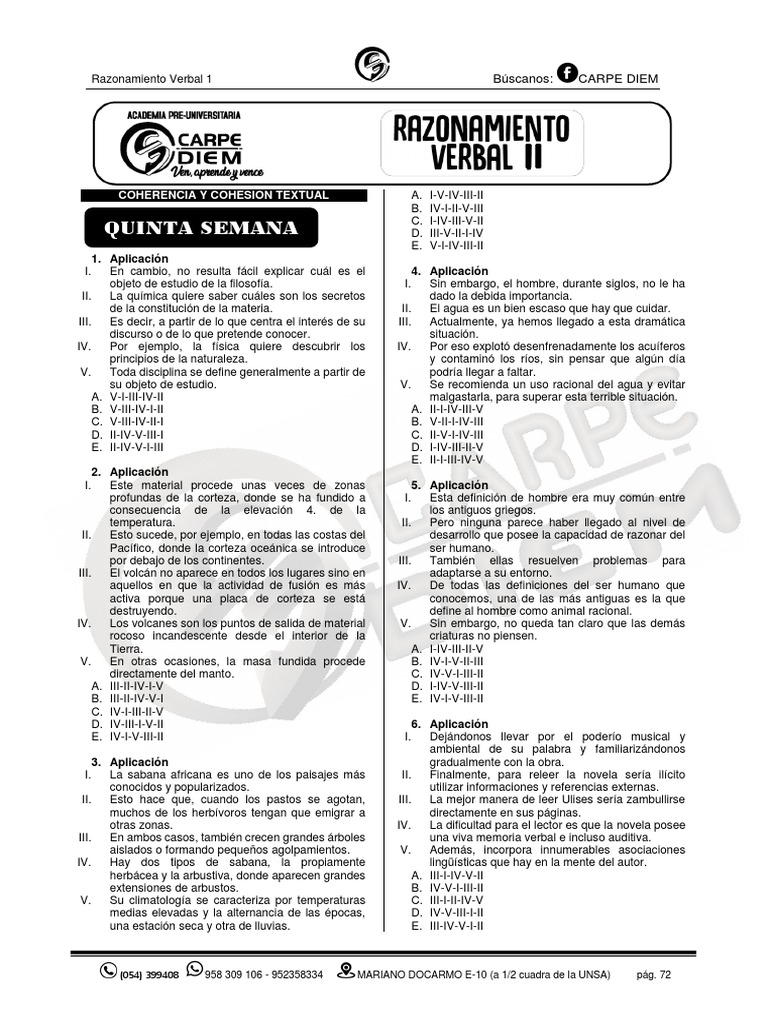 Razonamiento Verbal 1 Búscanos: CARPE DIEM