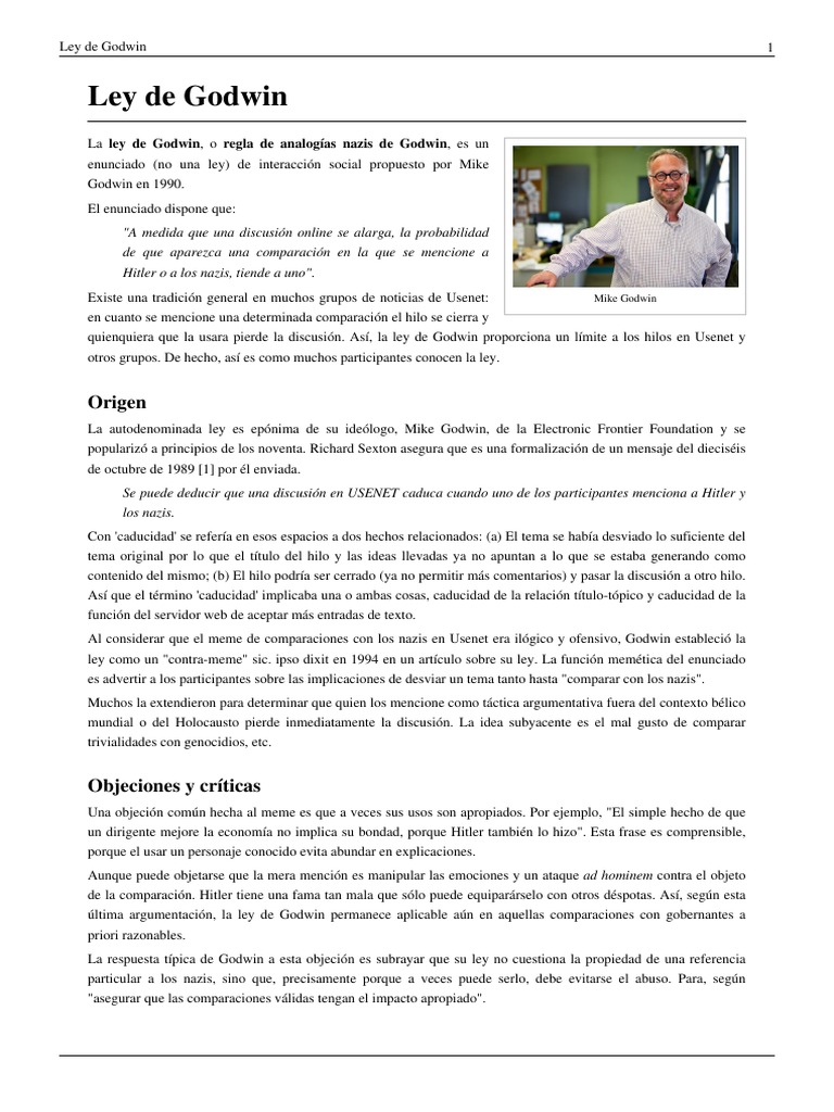 La ley de Godwin, o regla de analogías nazis de Godwin, es un