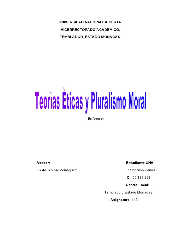 LAS TEORIAS ÉTICAS Y PLURALISMO MORAL