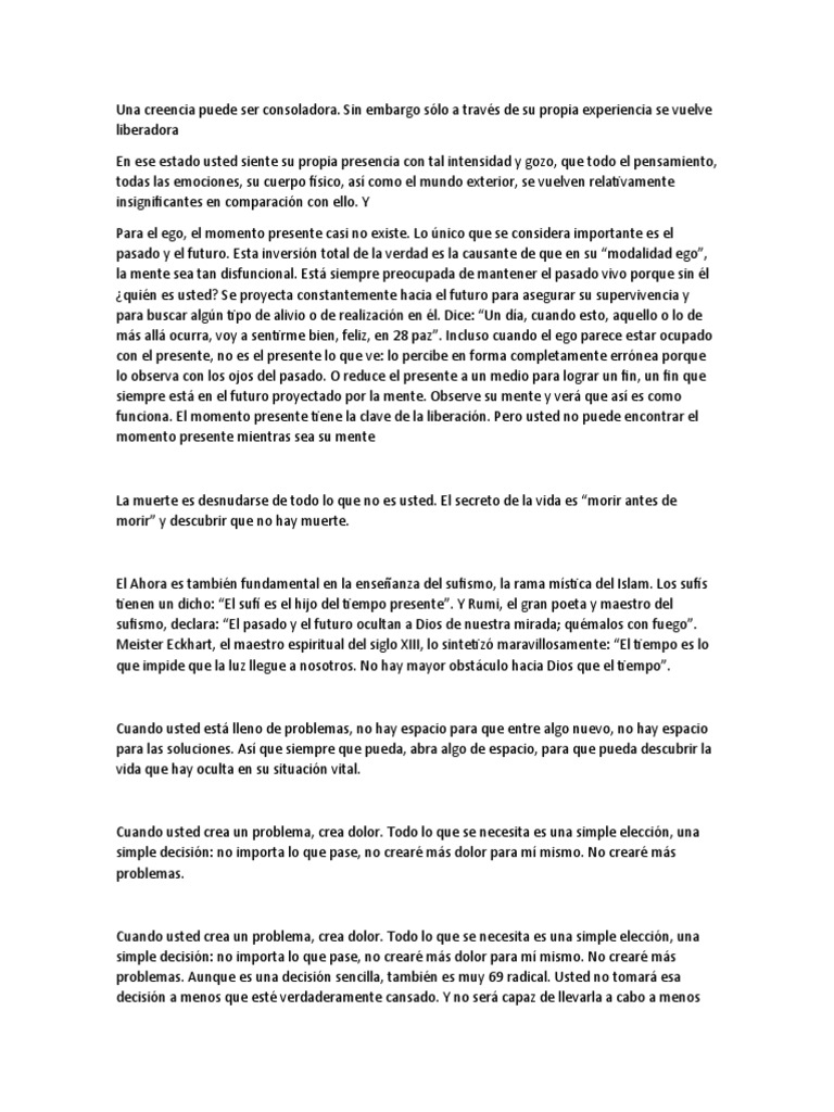 que acceda al poder del Ahora. Si usted no crea más dolor para sí mismo, no lo crea para los