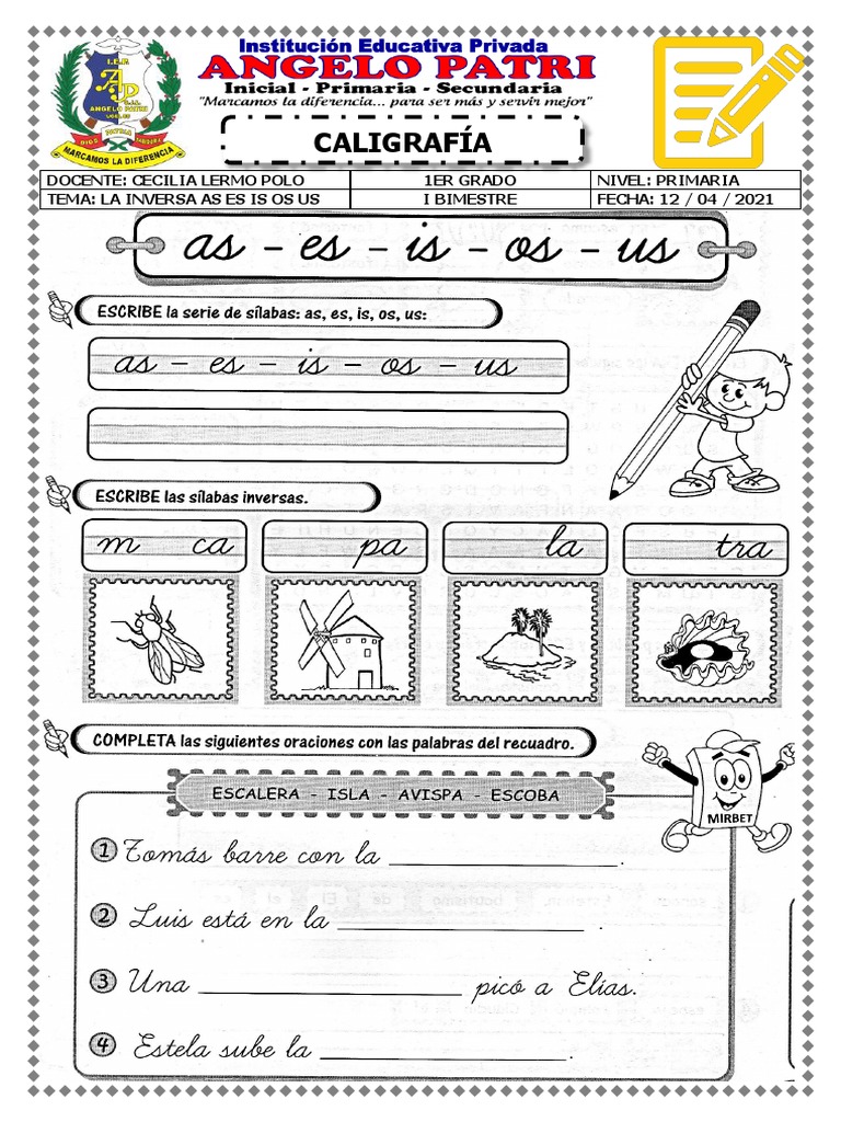 TEMA: LA INVERSA AS ES IS OS US I BIMESTRE FECHA: 12 / 04 / 2021