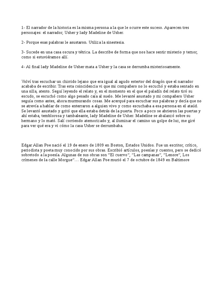 personajes: el narrador, Usher y lady Madeline de Usher.