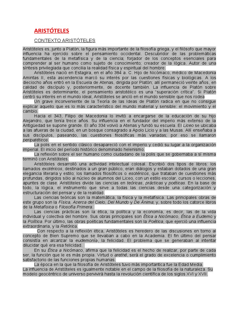 RESUMEN FRAGMENTOS TEXTO DE ARISTOTELES