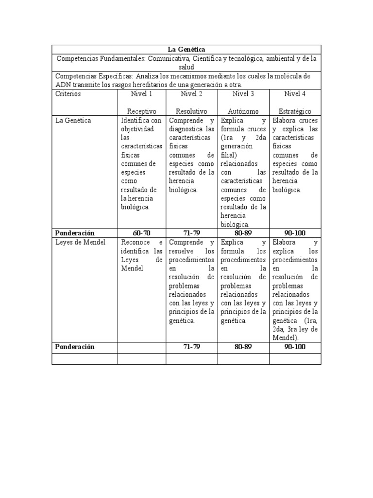 Criterios Nivel 1 Nivel 2 Nivel 3 Nivel 4