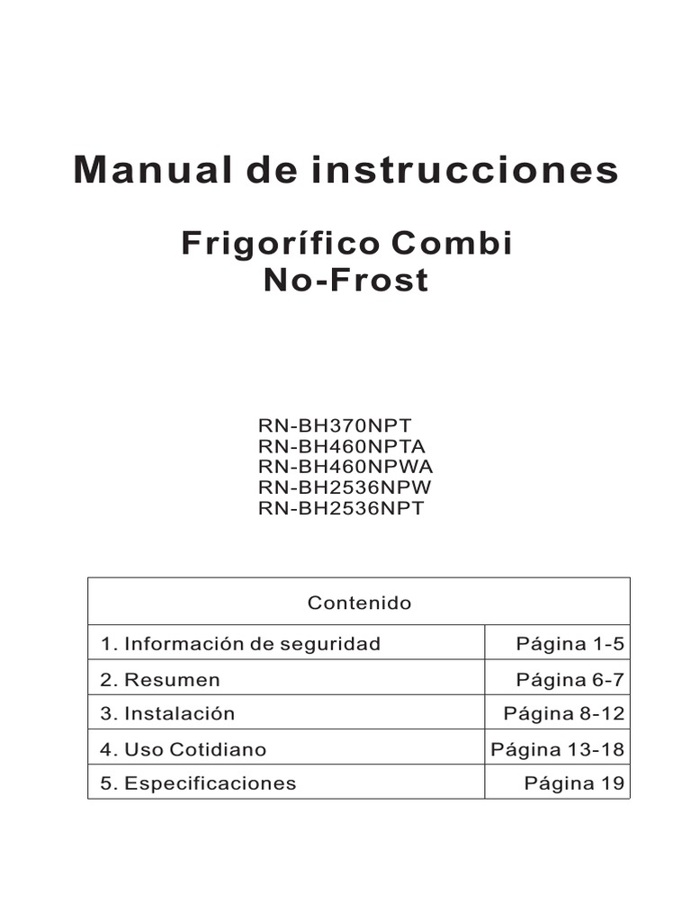Por su seguridad y para asegurar el uso correcto del frigorífico, antes