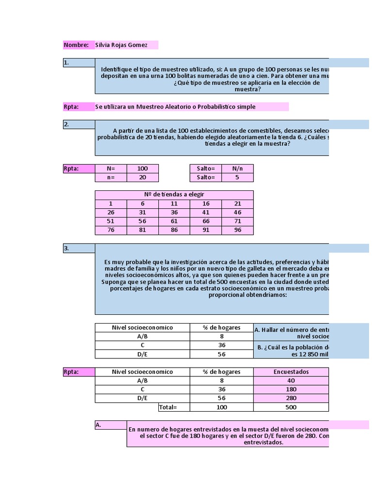 Rpta: Se utilizara un Muestreo Aleatorio o Probabilistico simple