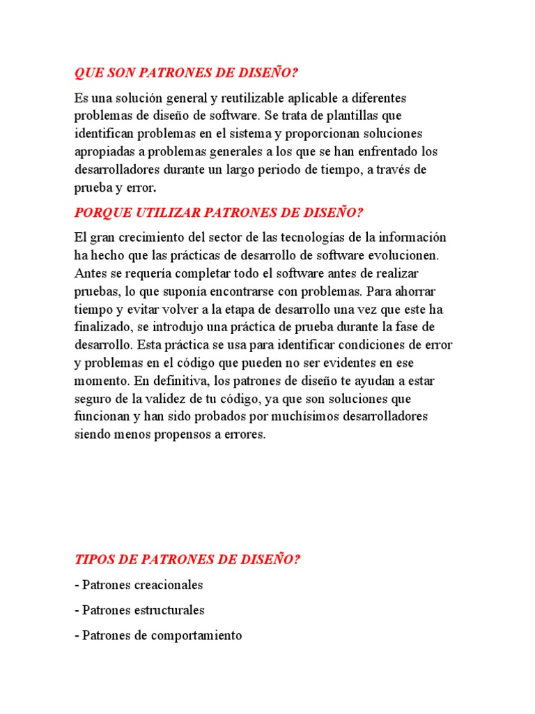 momento. En definitiva, los patrones de diseño te ayudan a estar