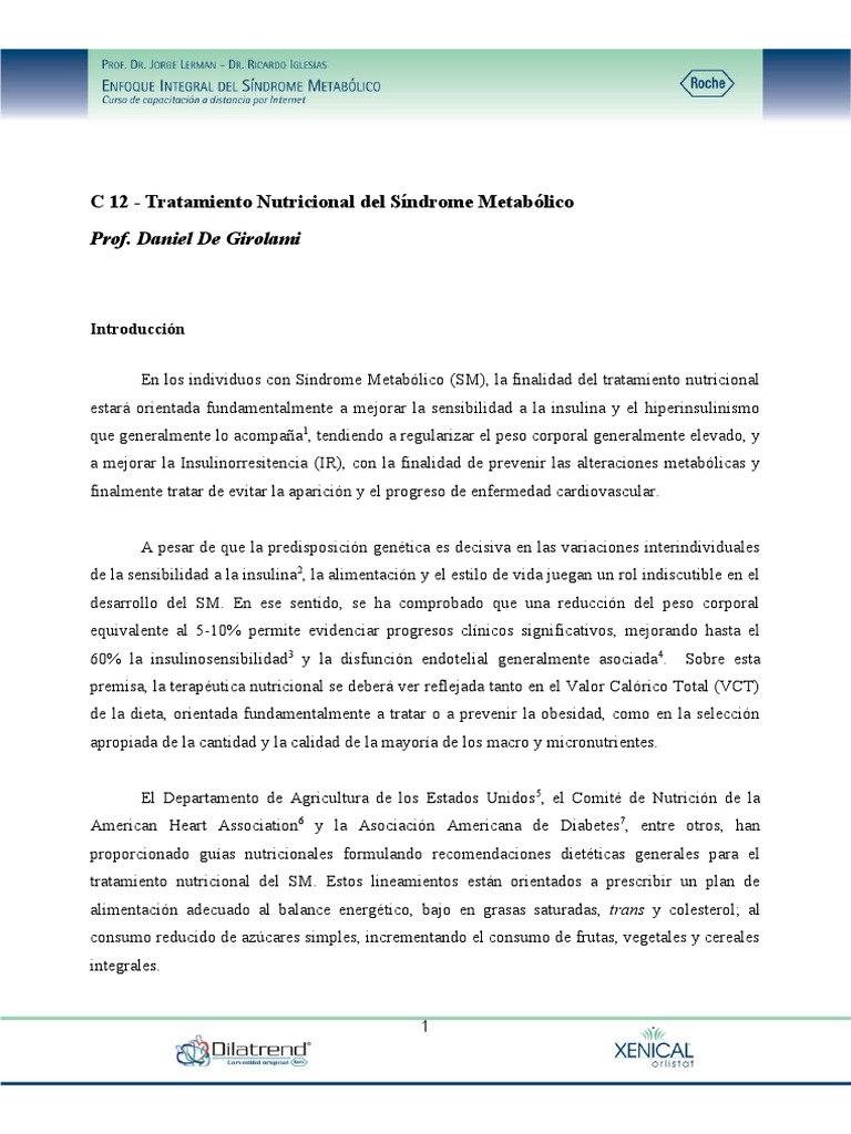En los individuos con Síndrome Metabólico (SM), la finalidad del tratamiento nutricional