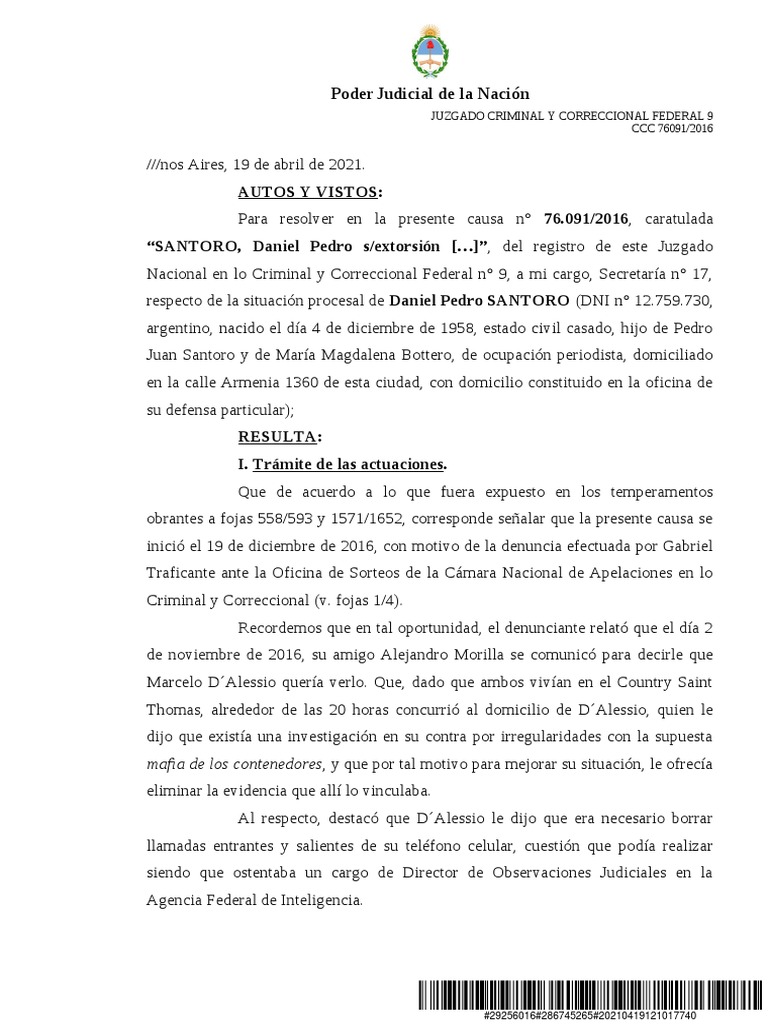 En estos términos, es que el encartado Daniel Pedro Santoro es