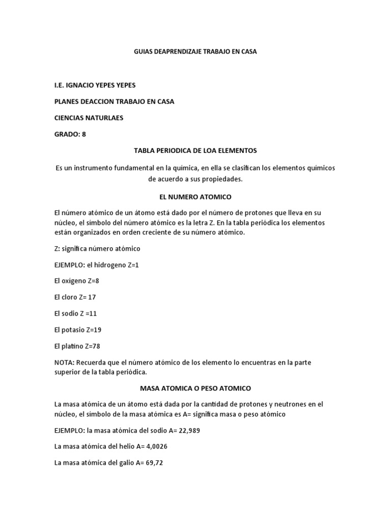 NOTA: Recuerda que la masa atómica o peso atómico (A), lo consigues en la parte superior