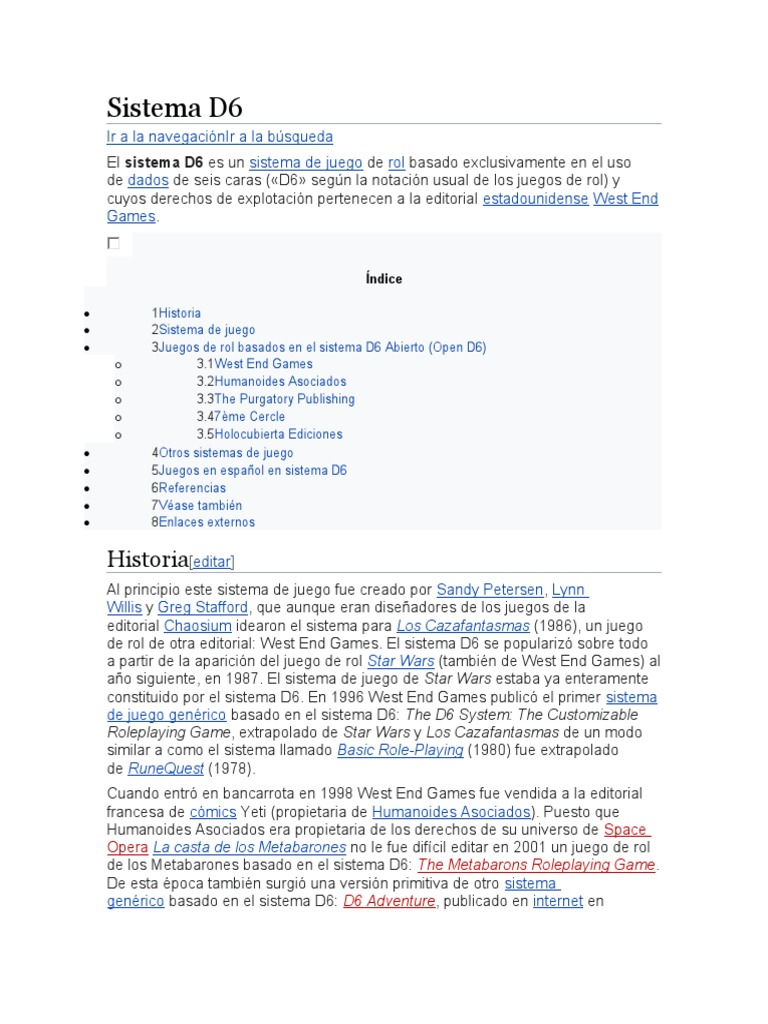 constituido por el sistema D6. En 1996 West End Games publicó el primer sistema