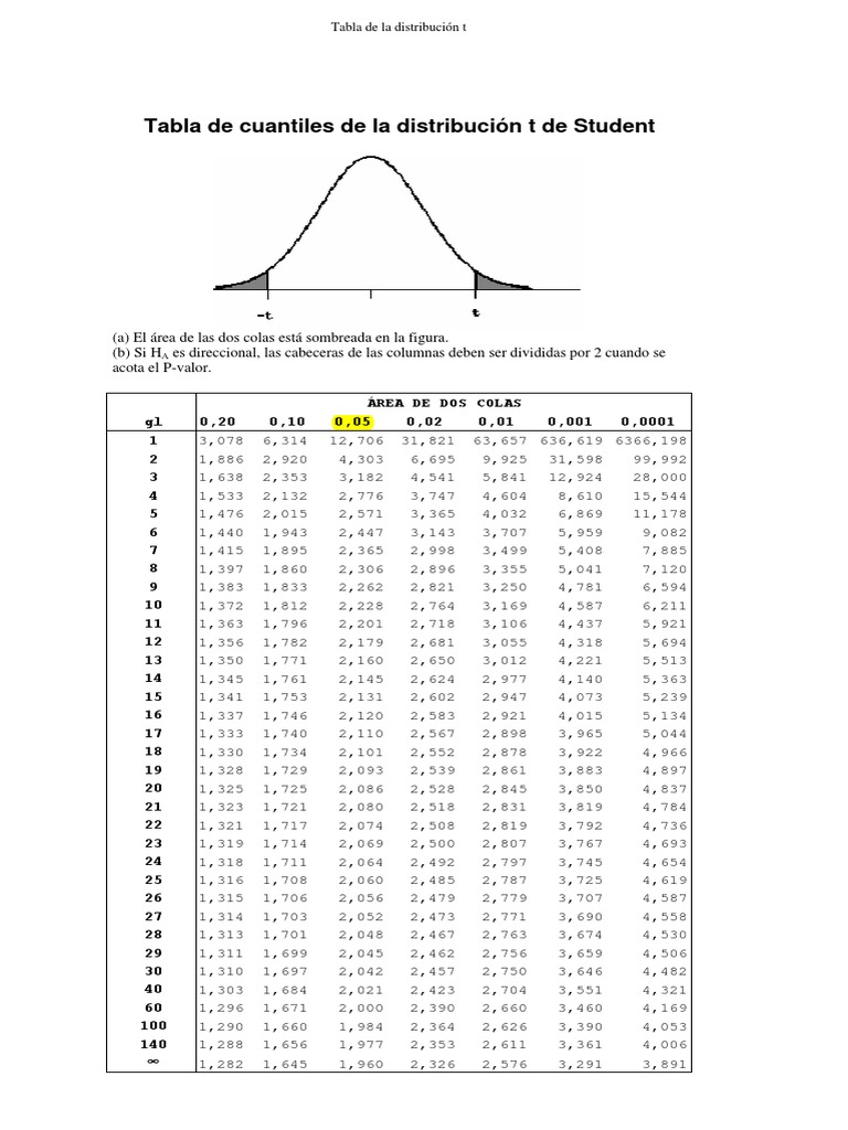 Tabla de cuantiles de la distribución t de Student