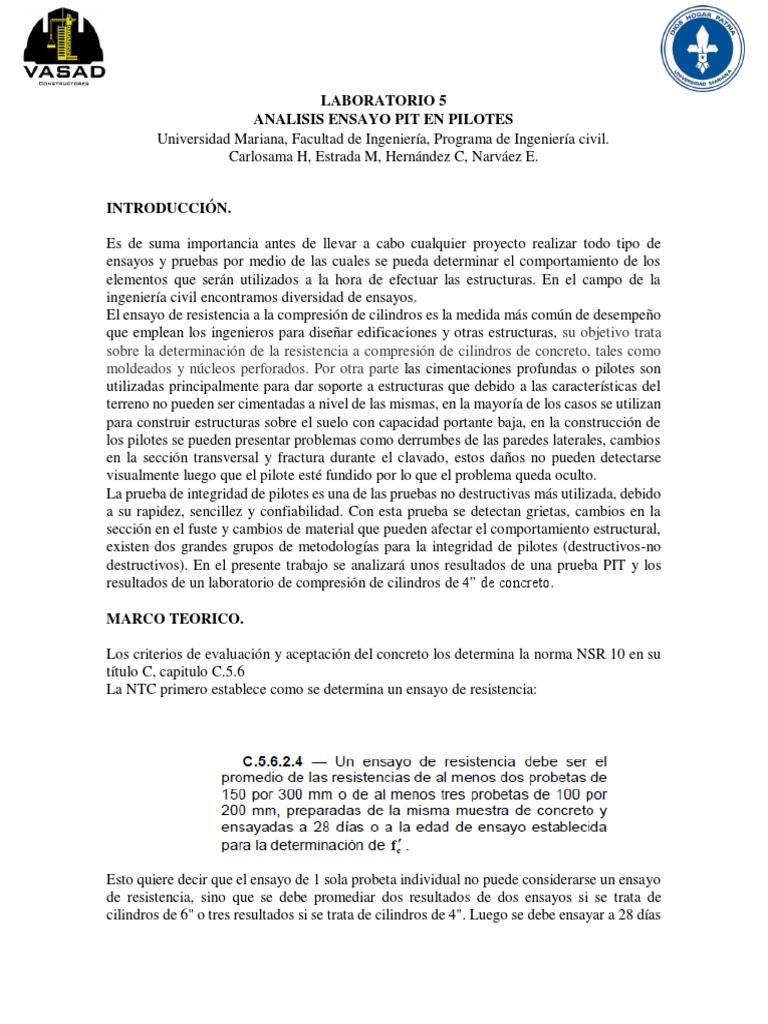 5. Para saber el resultado de una resistencia es el promedio de por lo menos dos cilindros de