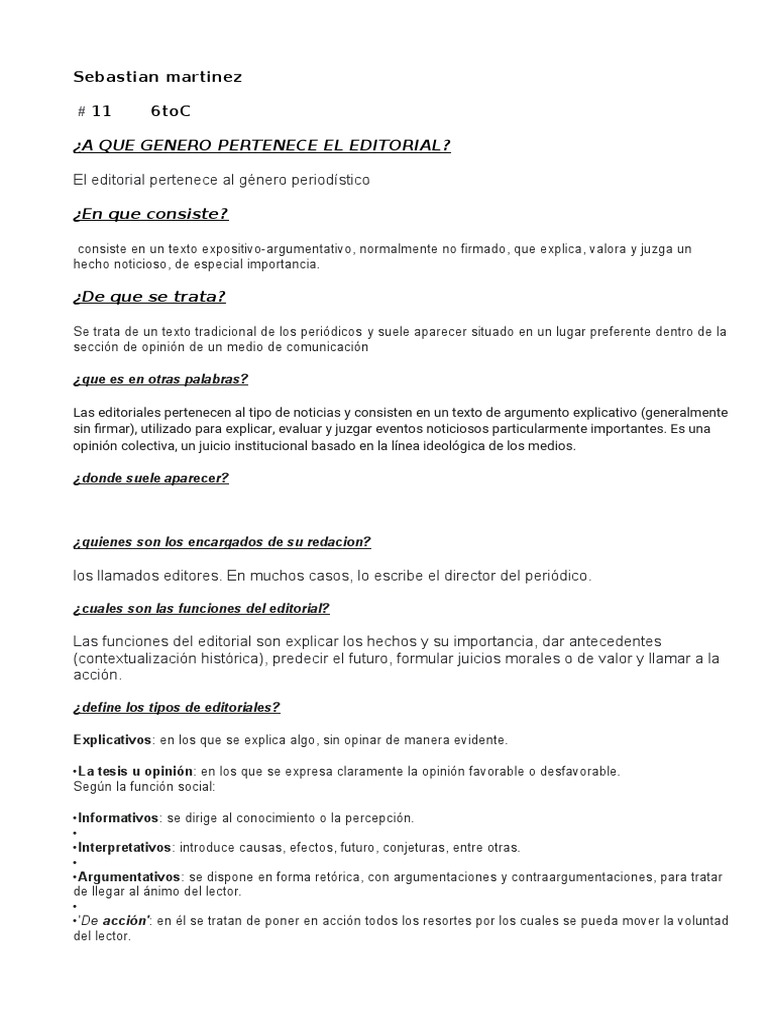 Redacta un resumen sobre los editoriales