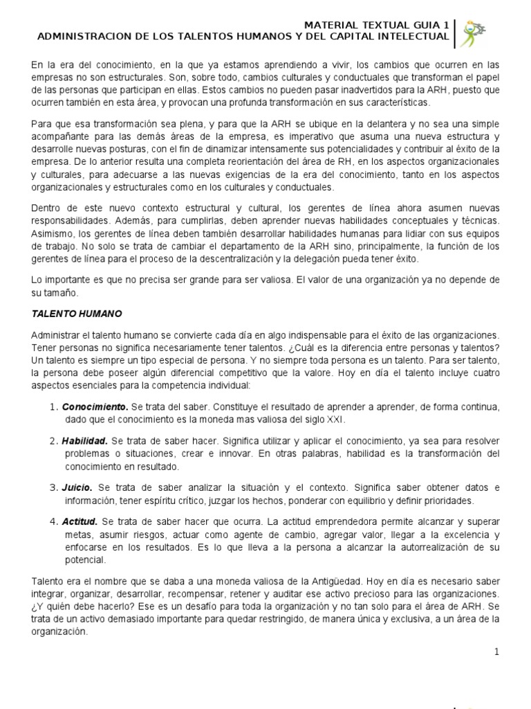 ADMINISTRACION DE LOS TALENTOS HUMANOS Y DEL CAPITAL INTELECTUAL