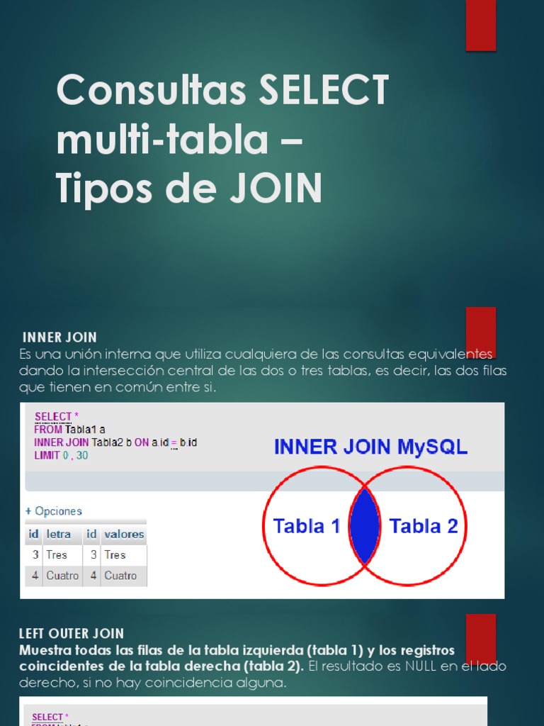 coincidentes de la tabla derecha (tabla 2). El resultado es NULL en el lado