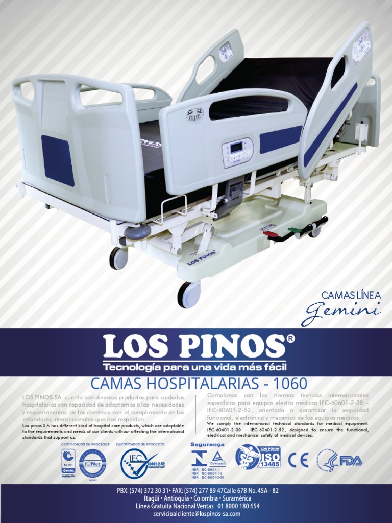 Los pinos S.A has different kind of hospital care products, which are adaptable We comply the international technical standards for medical equipment: