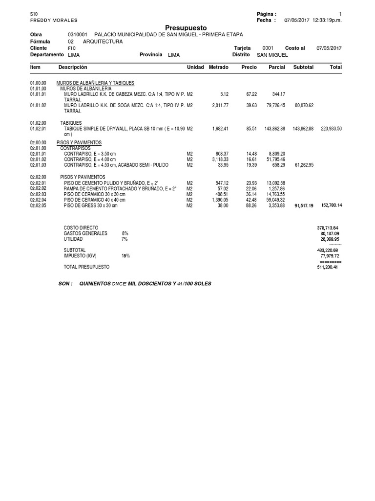 02.02.05 PISO DE GRESS 30 x 30 cm M2 38.00 88.26 3,353.88 91,517.19 152,780.14