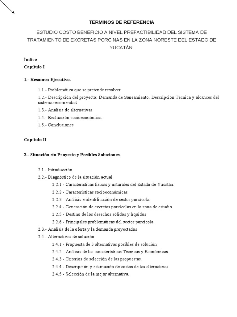 Estudio de Prefactibilidad: Tratamiento Excretas Porcinas Yucatán