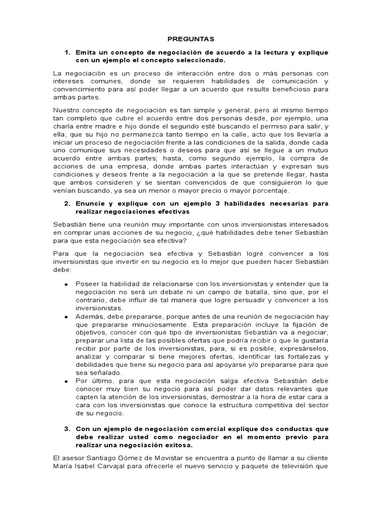 1. Emita un concepto de negociación de acuerdo a la lectura y explique