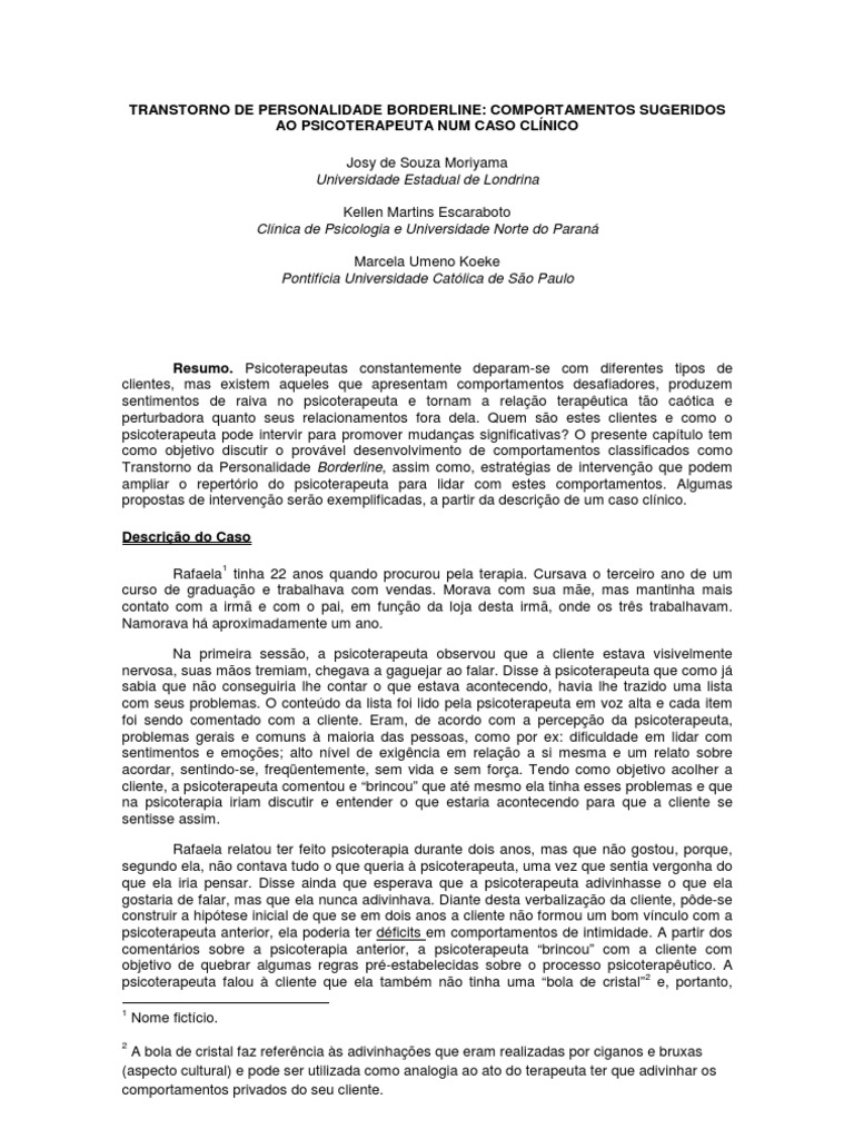 Borderline: uma visão comportamental. Interação em Psicologia, 9 (2):381-390.