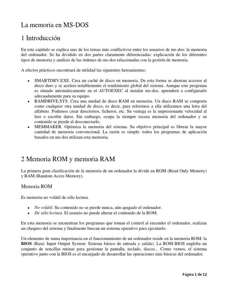 esta memoria. A partir de la versión 5.0 de ms-dos se pueden cargar controladores y programas