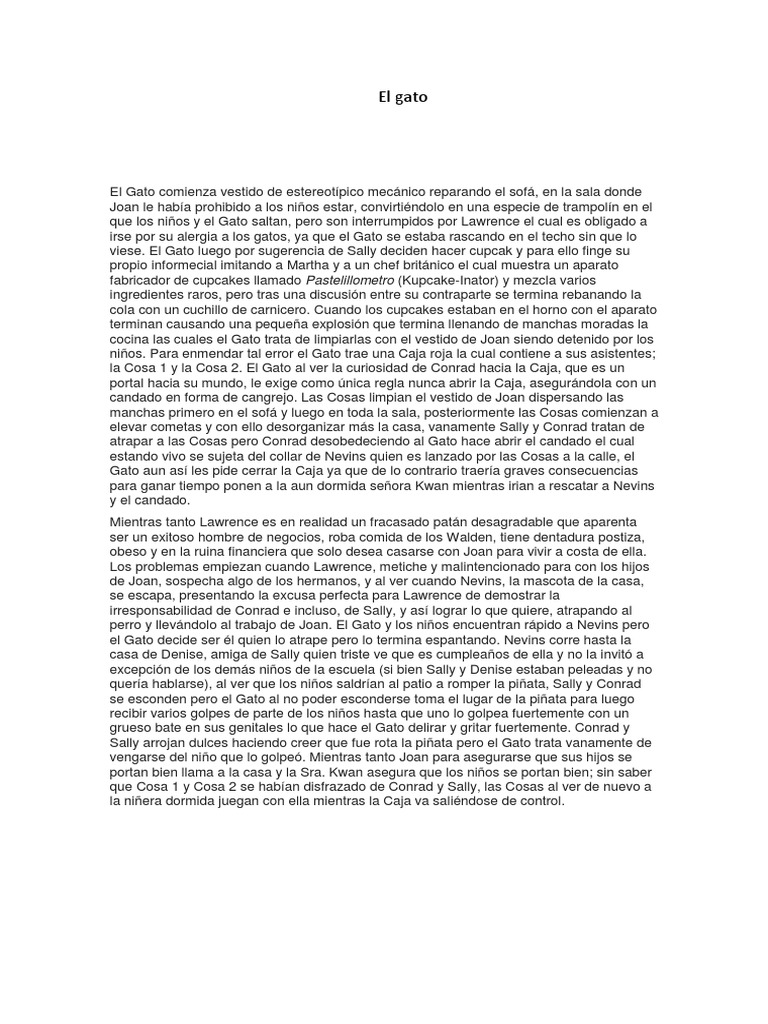 niños. Para enmendar tal error el Gato trae una Caja roja la cual contiene a sus asistentes;