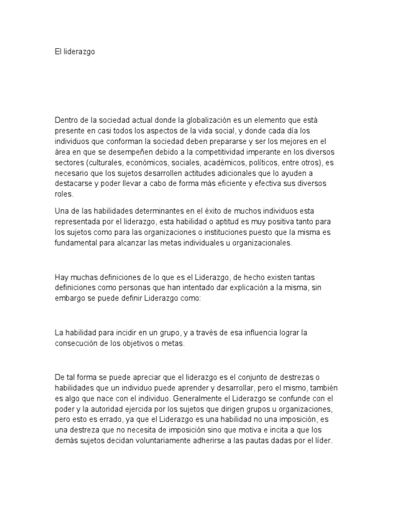embargo se puede definir Liderazgo como:
