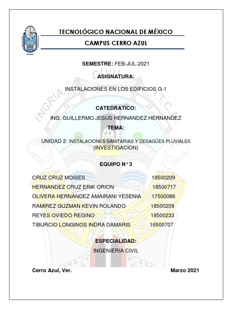 UNIDAD 2: INSTALACIONES SANITARIAS Y DESAGÜES PLUVIALES