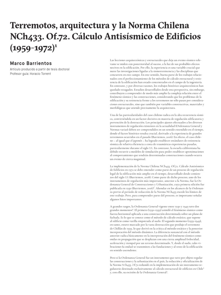 Sin embargo, la oficialización de la Norma NCh433 validó parte de los criterios allí establecidos. Espe- publicado en el número de junio de 1962 de la