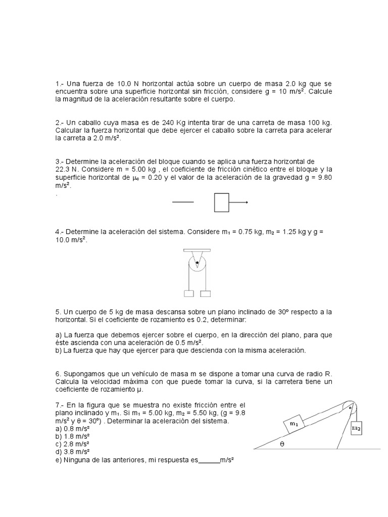 1.- Una fuerza de 10.0 N horizontal actúa sobre un cuerpo de masa 2.