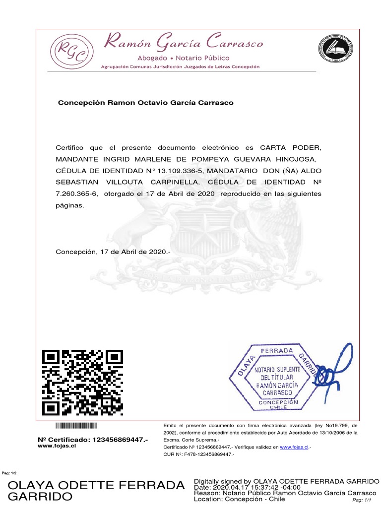 Certifico que el presente documento electrónico es CARTA PODER,