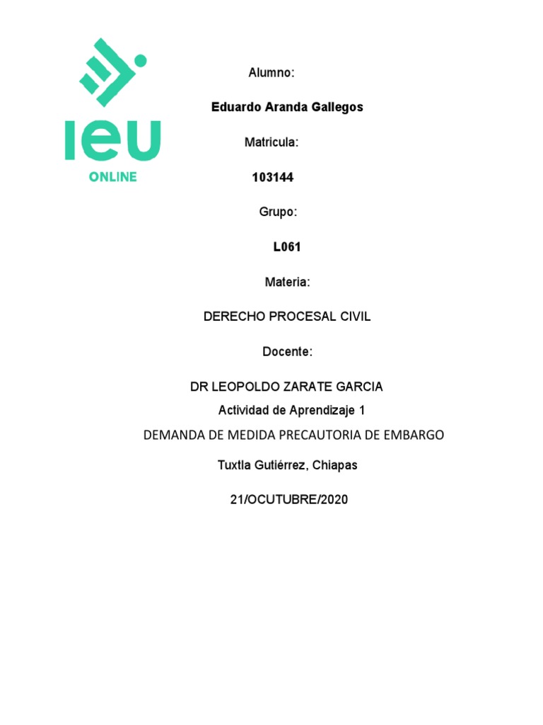 DEMANDA DE MEDIDA PRECAUTORIA DE EMBARGO