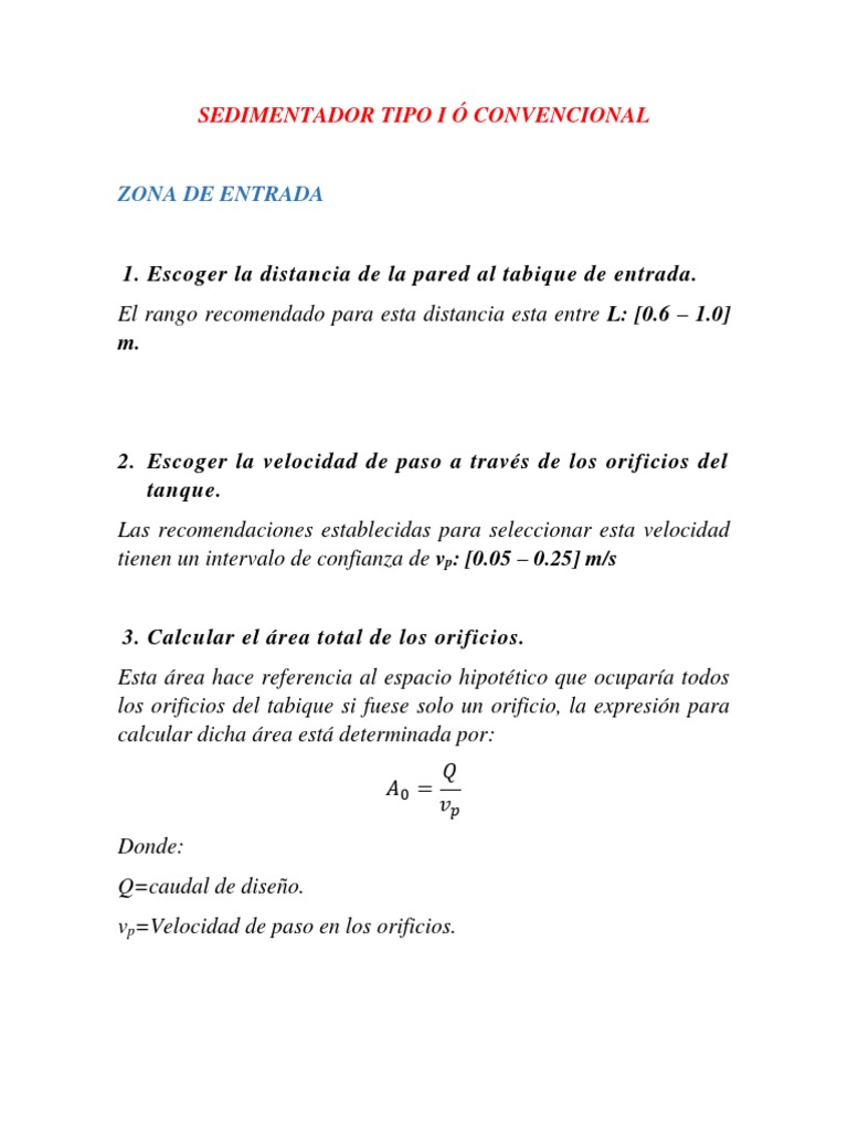 SEDIMENTADOR TIPO I Ó CONVENCIONAL
