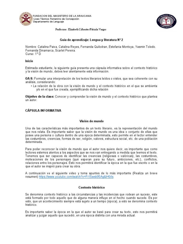 Estimada estudiante, la siguiente guía presenta una cápsula informativa sobre el contexto histórico
