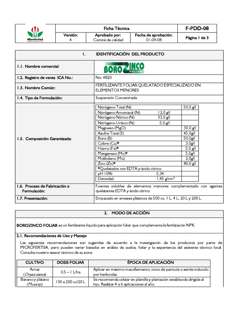 VER ANEXO HOJA DE SEGURIDAD BOROZINCO FOLIAR (F-PRH-14)
