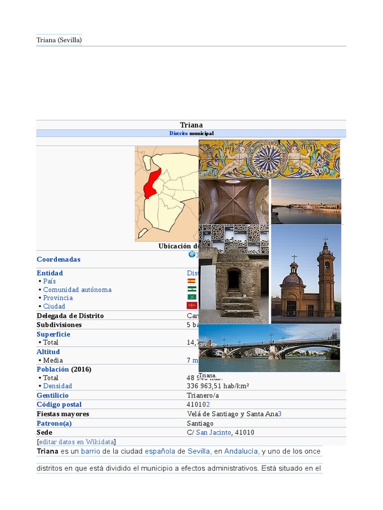 Triana es un barrio de la ciudad española de Sevilla, en Andalucía, y uno de los once