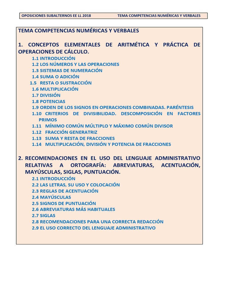 OPOSICIONES SUBALTERNOS EE LL 2018 TEMA COMPETENCIAS NUMÉRICAS Y VERBALES