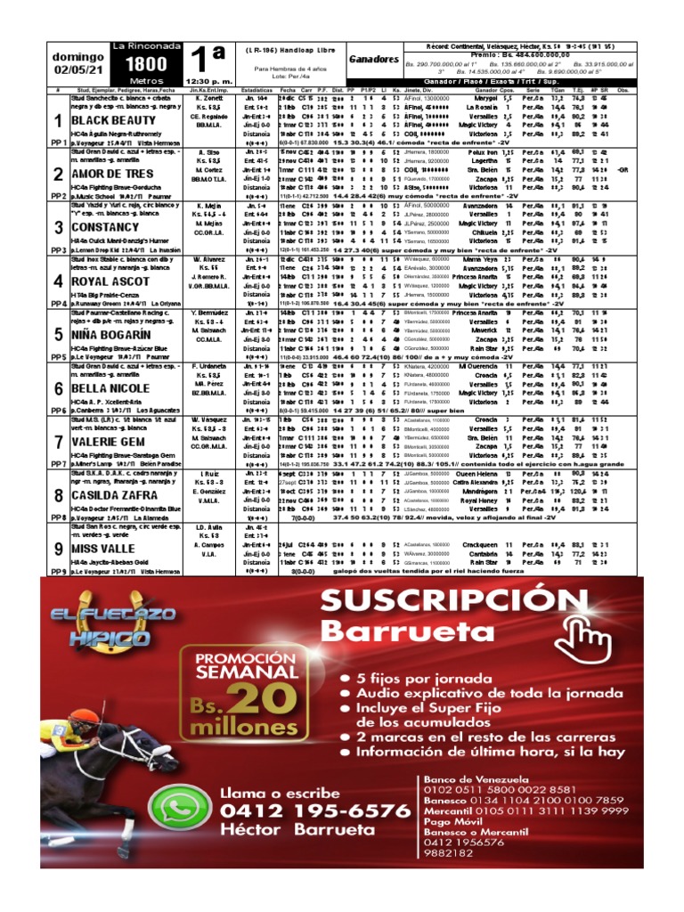 Premio: Bs. 484.500.000,00