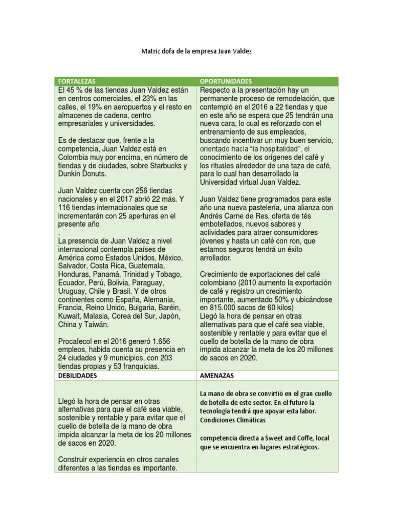 nacionales y en el 2017 abrió 22 más. Y Juan Valdez tiene programados para este