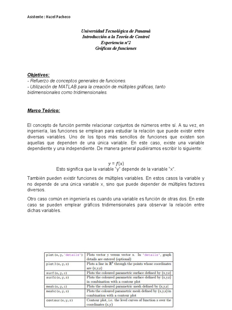 En la tabla#1 se presenta una lista de las diversas funciones utilizadas por Matlab para