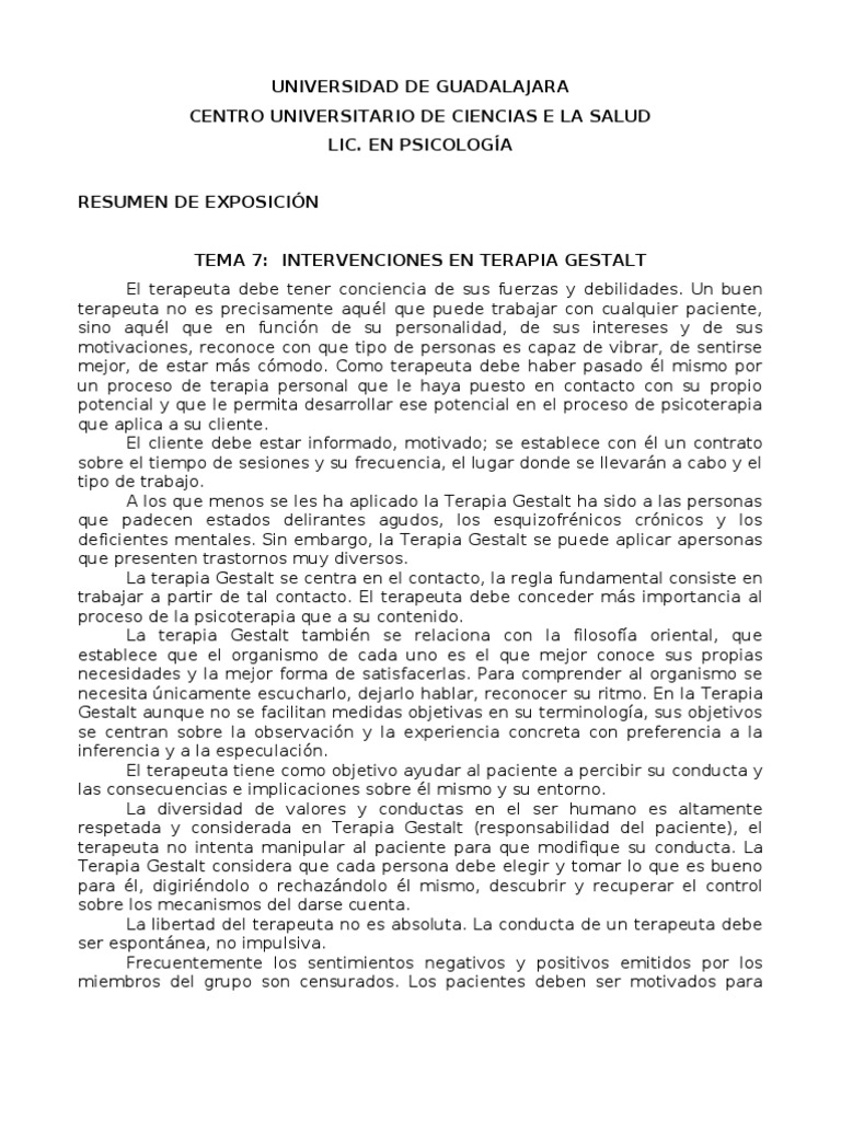 TEMA 7: INTERVENCIONES EN TERAPIA GESTALT