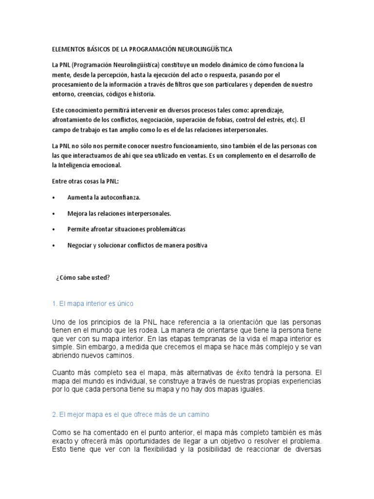 ELEMENTOS BÁSICOS DE LA PROGRAMACIÓN NEUROLINGÜÍSTICA