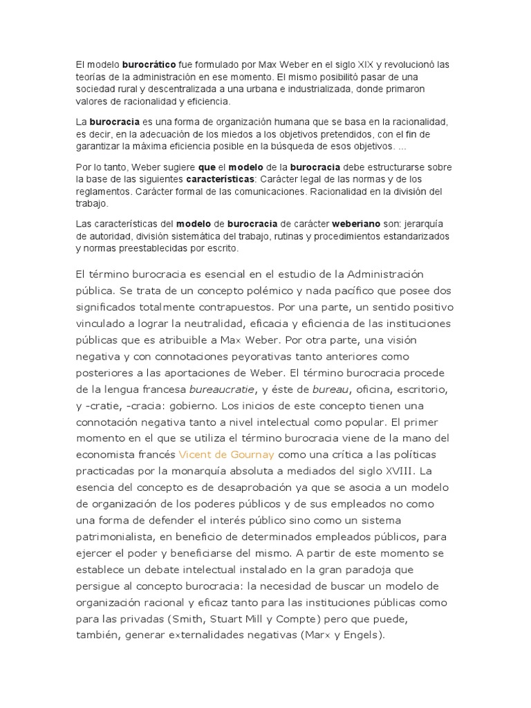 posteriores a las aportaciones de Weber. El término burocracia procede