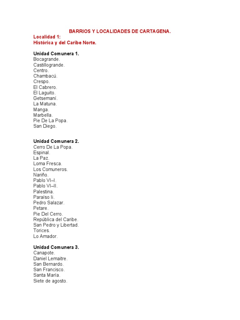 BARRIOS Y LOCALIDADES DE CARTAGENA.